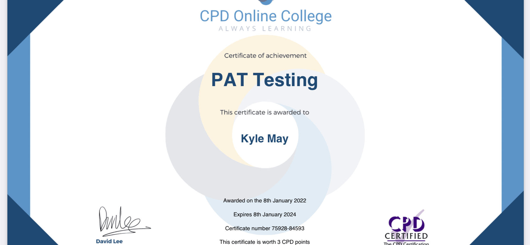 Hi my name is Kyle May owner of KM PAT Testing. We are small local Carlisle based company who pride ourselves on good quality service.